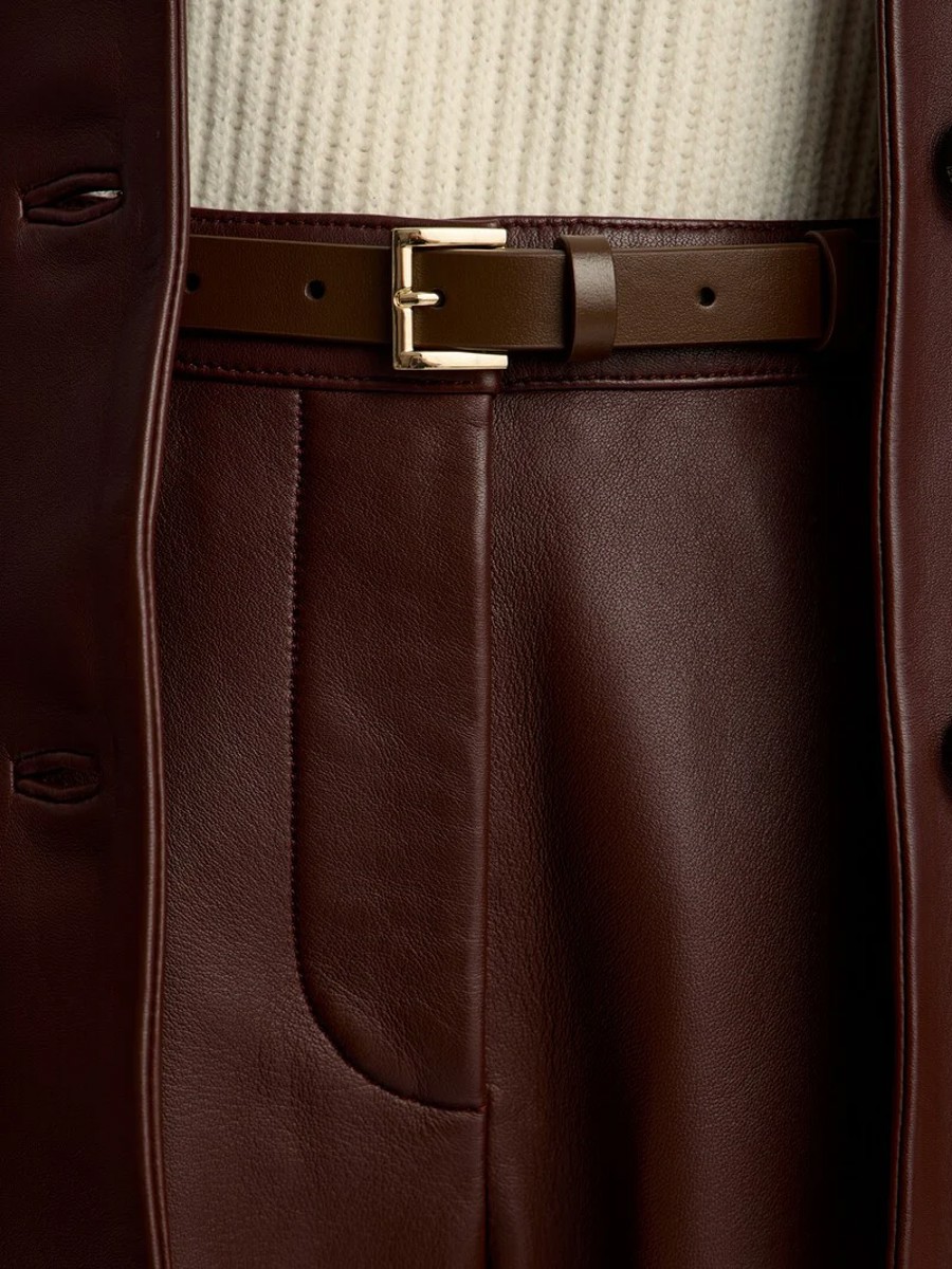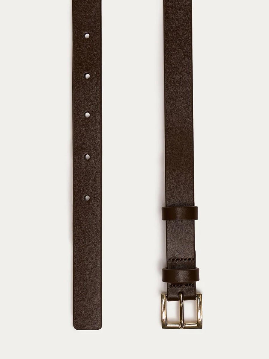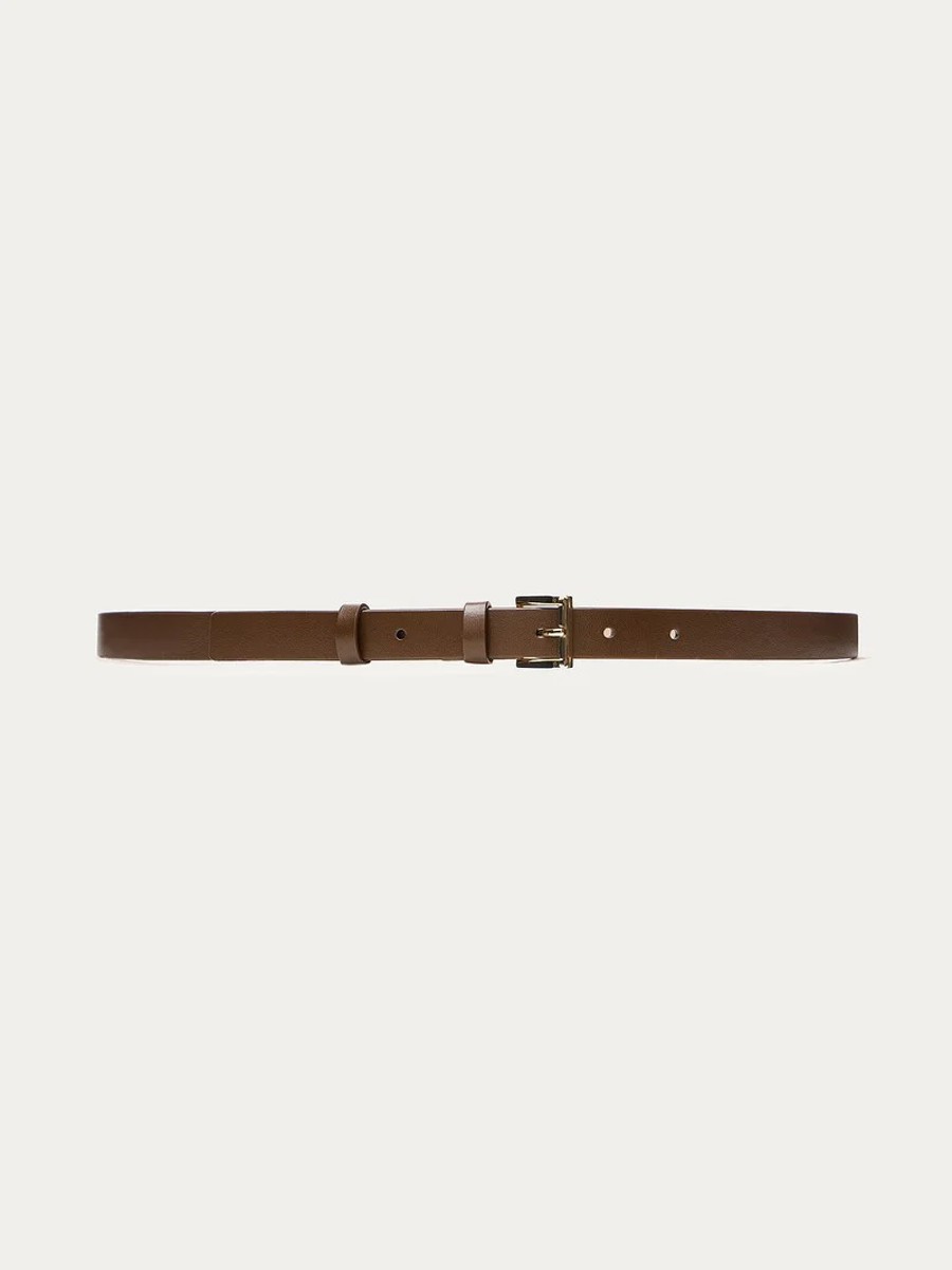 The leather belt is a sleek addition to your dresses and shirts. Crafted from durable, smooth leather, it features an 18mm width. The light-toned lining prevents color transfer onto your clothing.