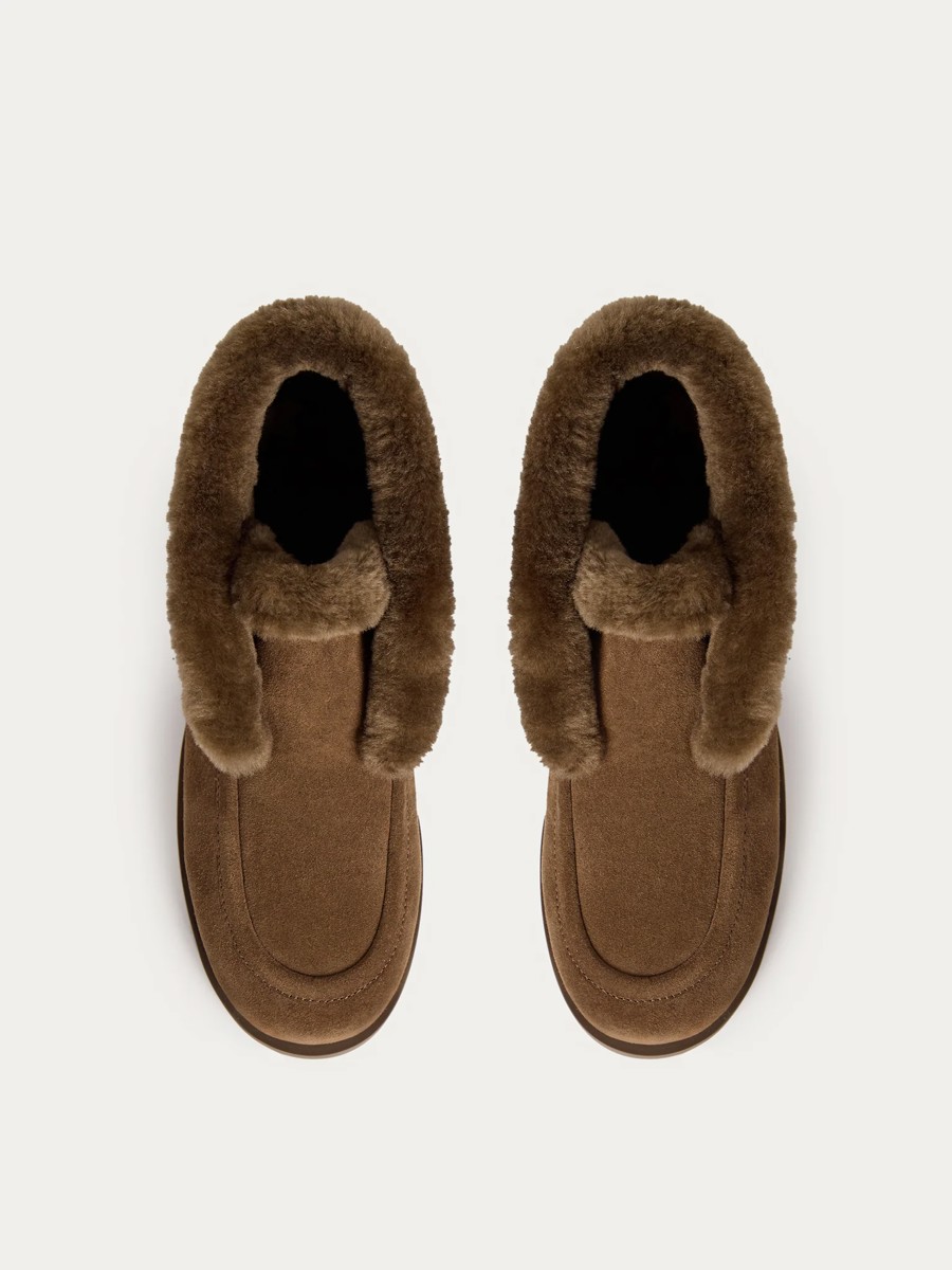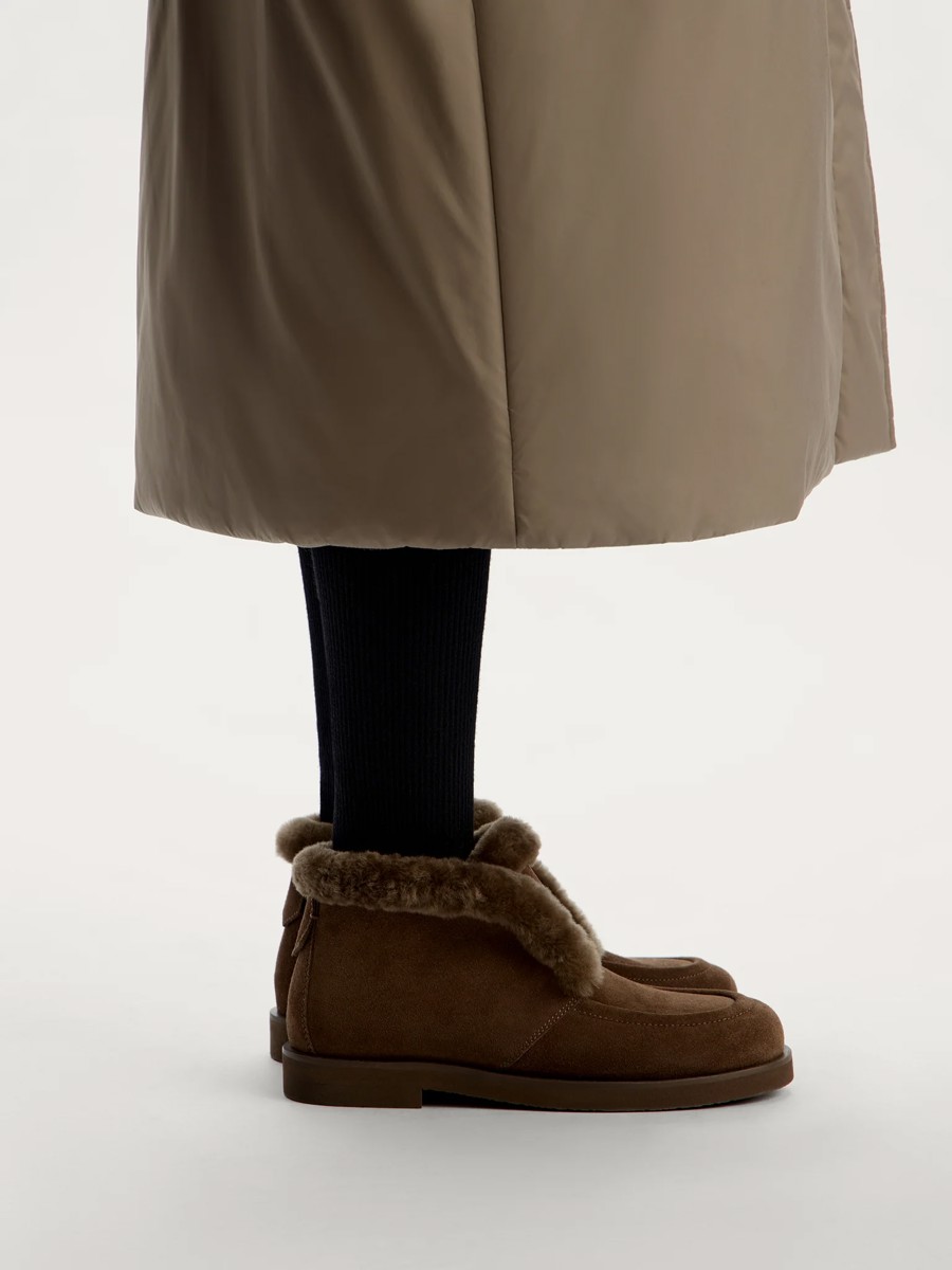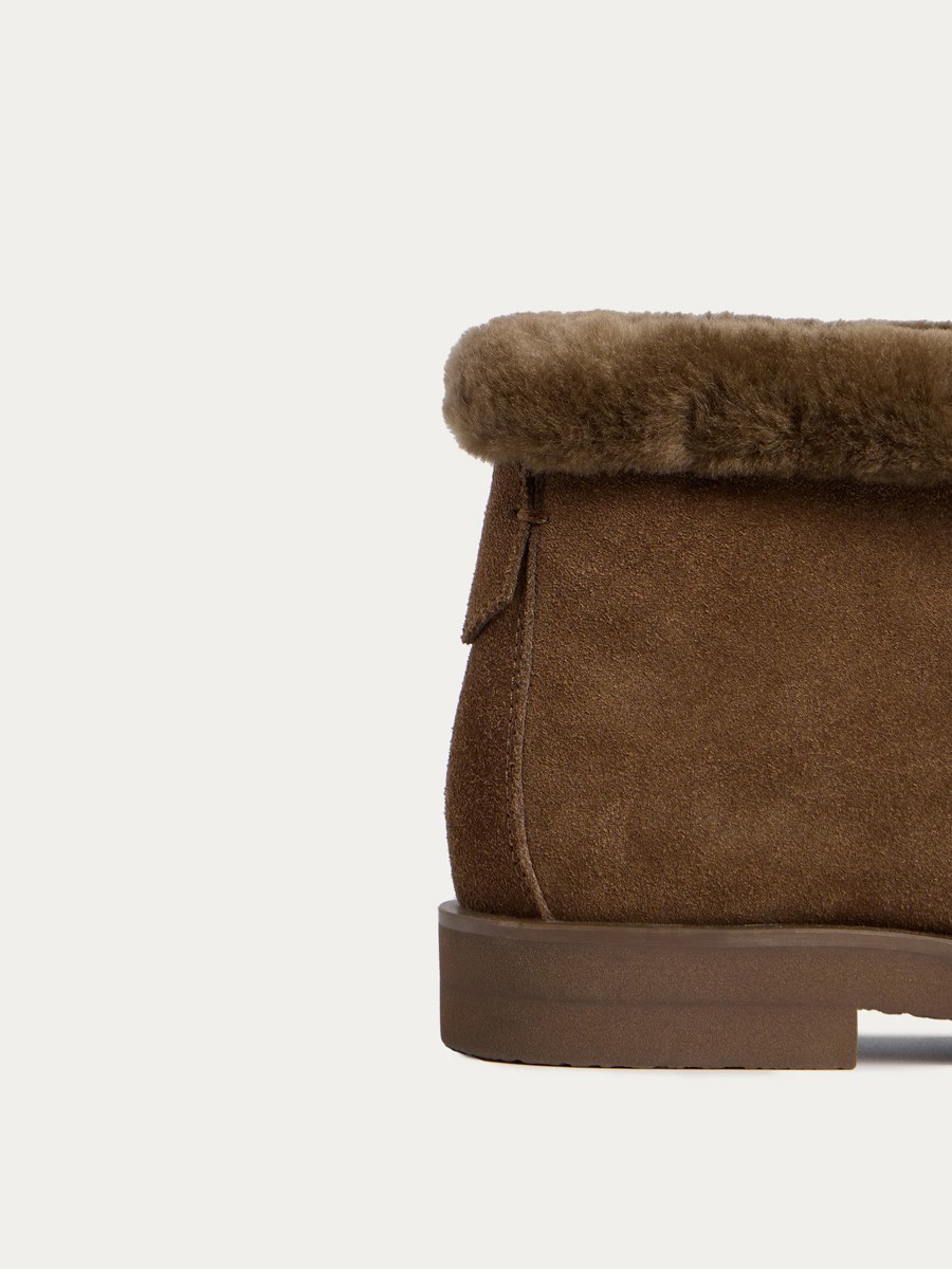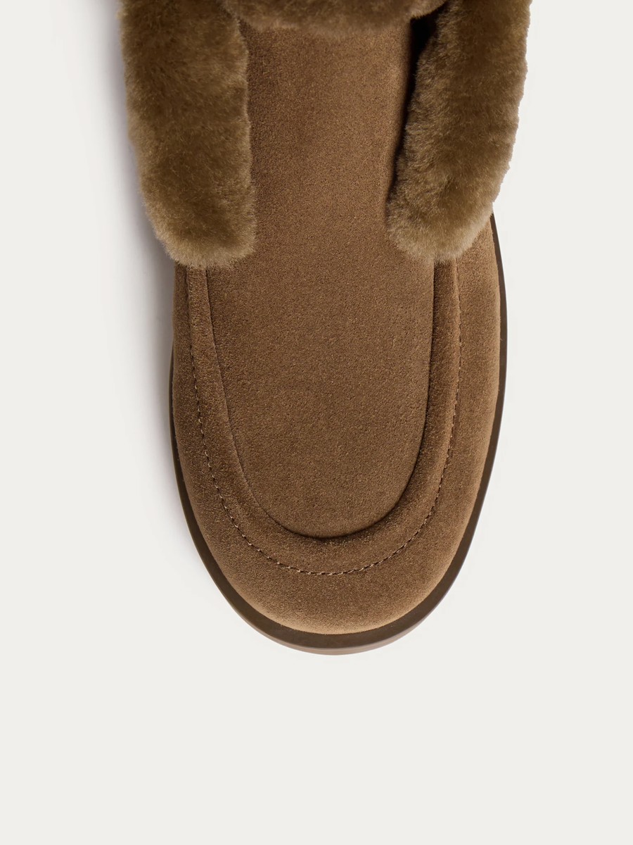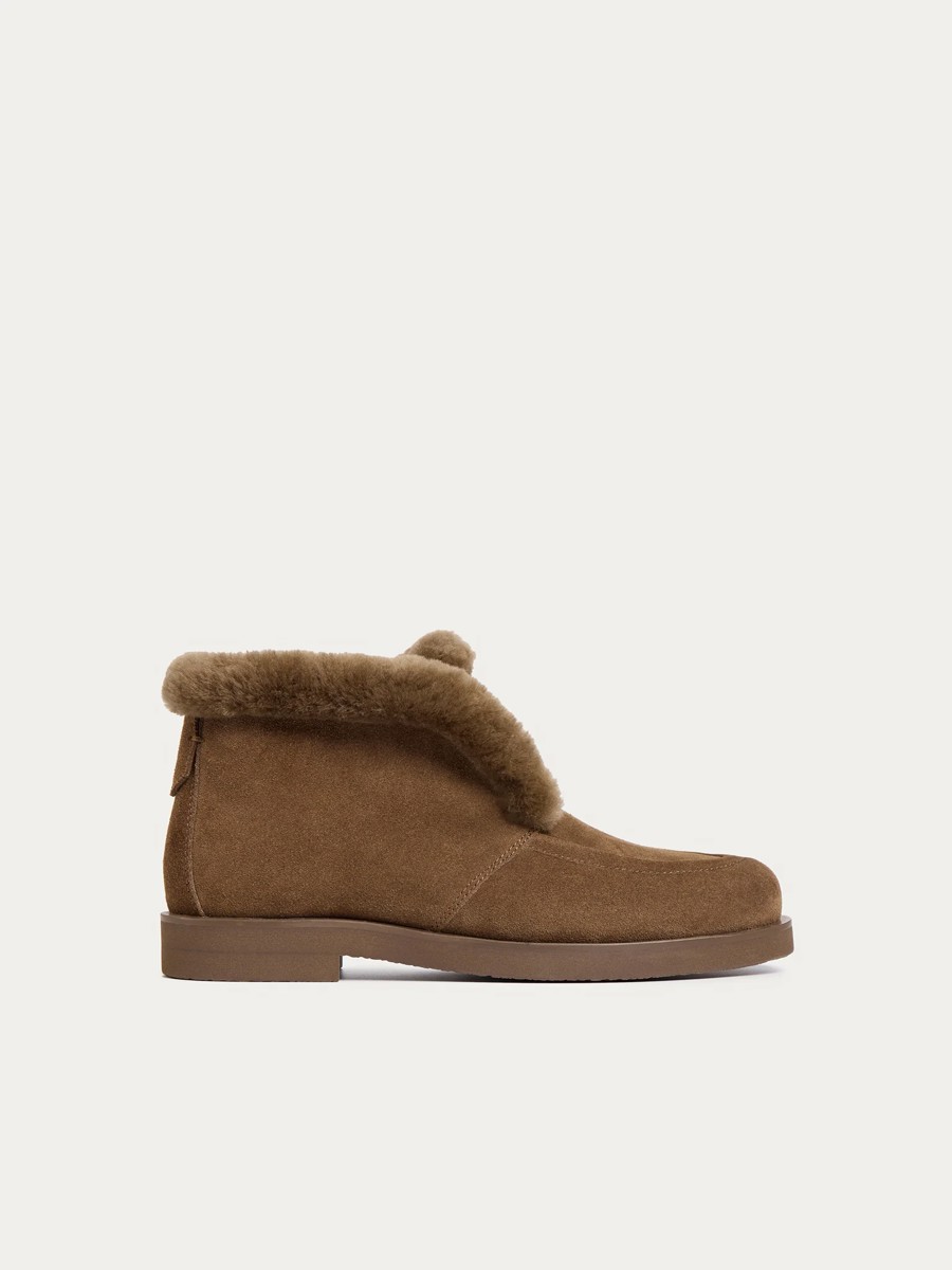 Сапоги из замши с овечьим мехом - это стильное дополнение к платьям и рубашкам. Изготовленные из прочной и гладкой кожи, эти сапоги имеют легкую подкладку, которая предотвращает перенос цвета на вашу одежду.